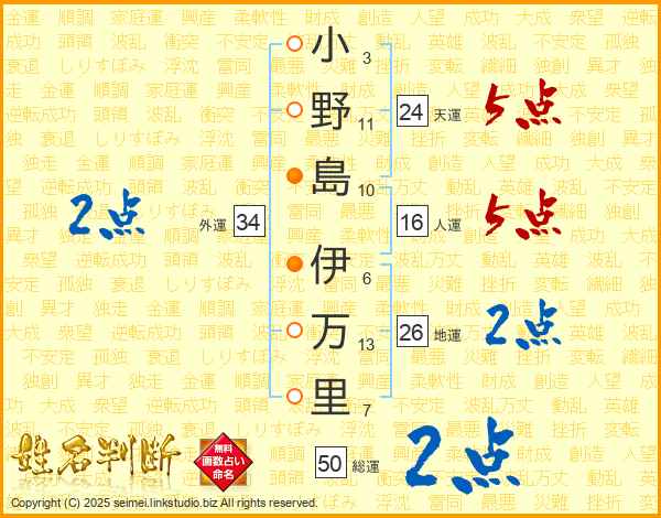 小野島伊万里さんの天運は24画の5点!