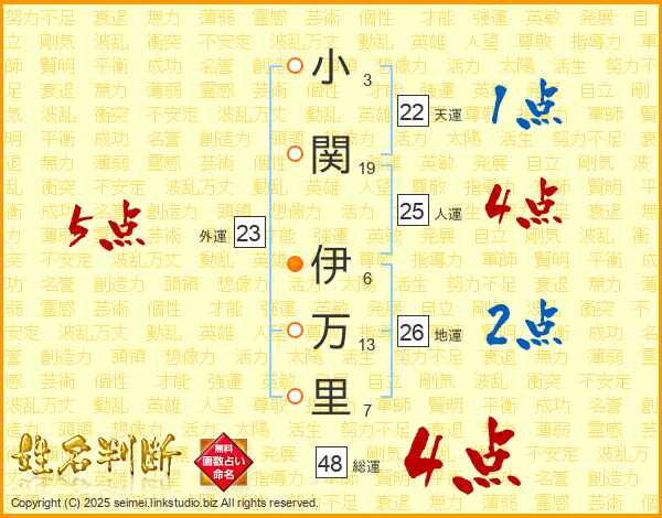 小関伊万里さんの人運は25画の4点!
