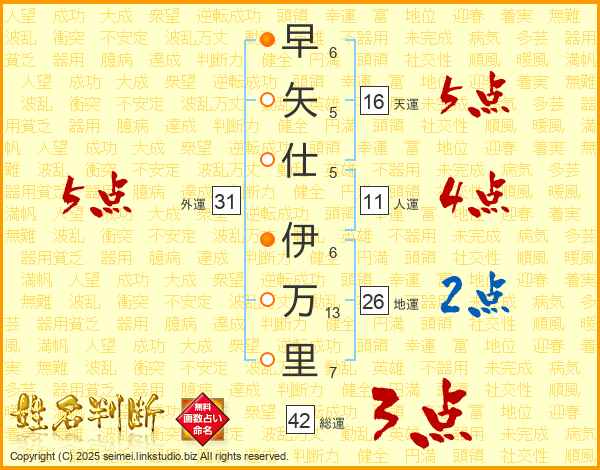 早矢仕伊万里さんの外運は31画の5点!