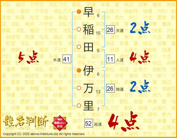 早稲田伊万里さんの総運は52画の4点!