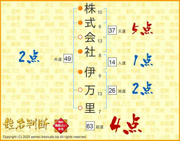 株式会社伊万里さんの総運は63画の4点!