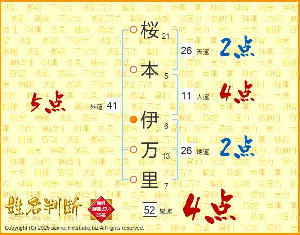 桜本伊万里さんの総運は52画の4点!