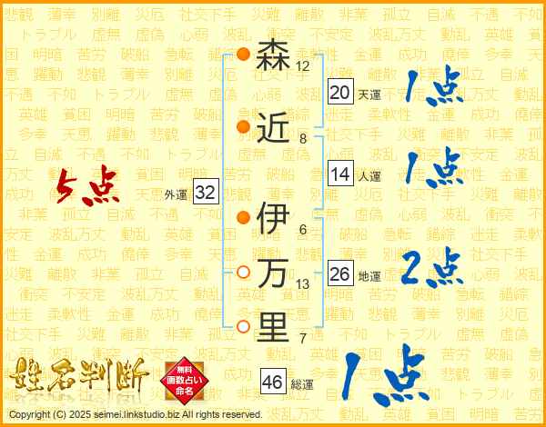 森近伊万里さんの外運は32画の5点!