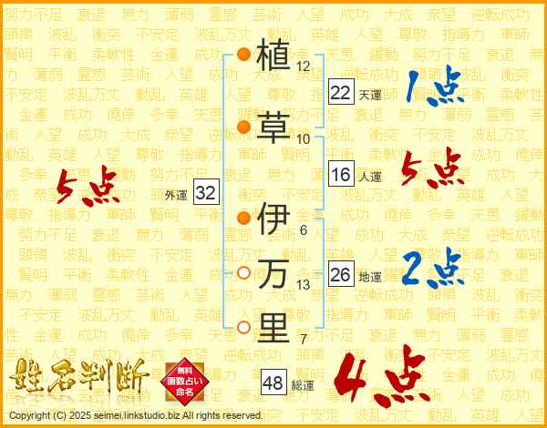 植草伊万里さんの総運は48画の4点!