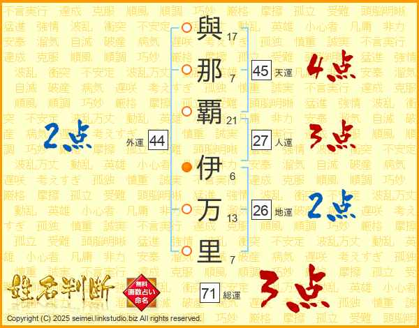 與那覇伊万里さんの天運は45画の4点!