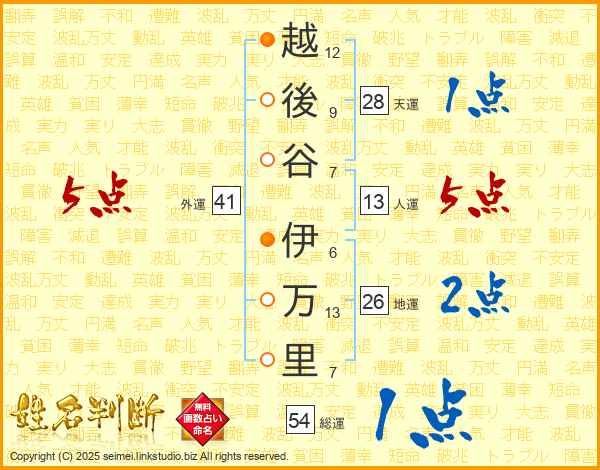 越後谷伊万里さんの総運は54画の1点!