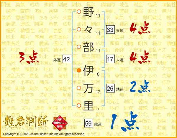 野々部伊万里さんの地運は26画の2点!