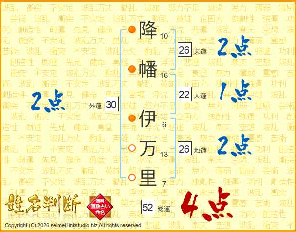 降(10画)幡(16画) 伊(6画)万(13画)里(7画)