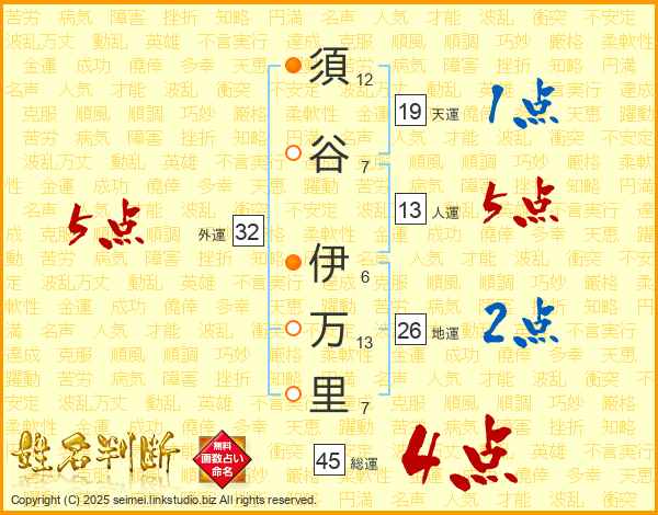 須(12画)谷(7画) 伊(6画)万(13画)里(7画)