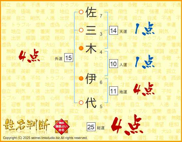 佐三木伊代さんの外運は15画の4点!