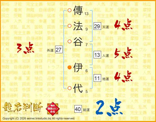 傳法谷伊代さんの人運は13画の5点!