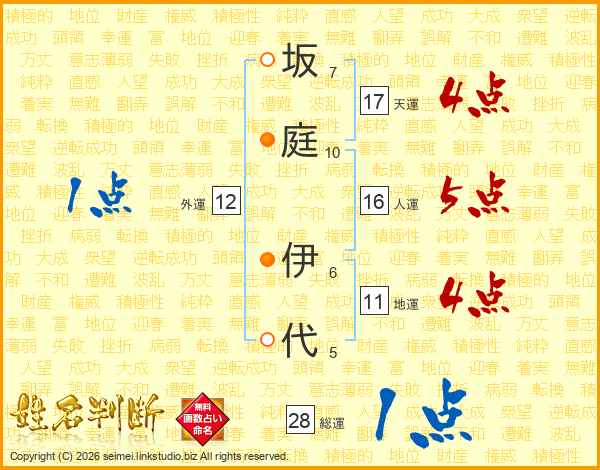 坂庭伊代さんの天運は17画の4点!