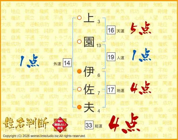上園伊佐夫さんの総運は33画の4点!