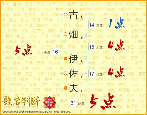 古畑伊佐夫さんの総運は31画の5点!