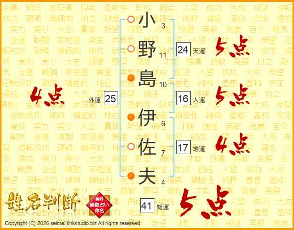 小(3画)野(11画)島(10画) 伊(6画)佐(7画)夫(4画)