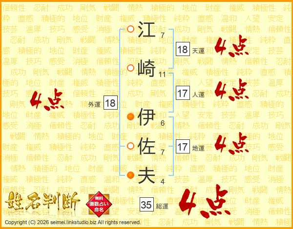 江崎伊佐夫さんの天運は18画の4点!