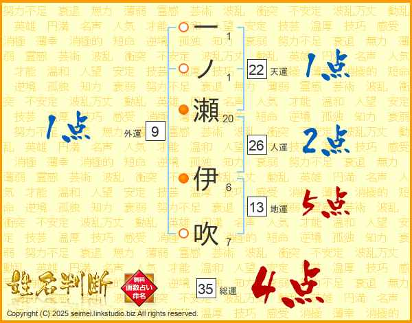 一ノ瀬伊吹さんの総運は35画の4点!