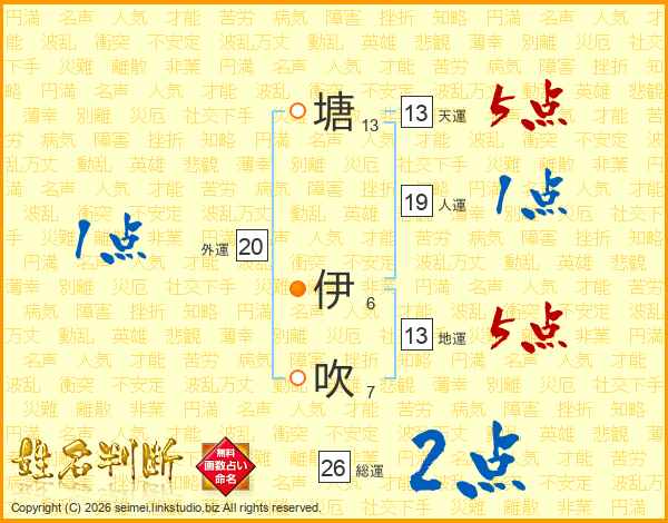 塘伊吹さんの天運は13画の5点!