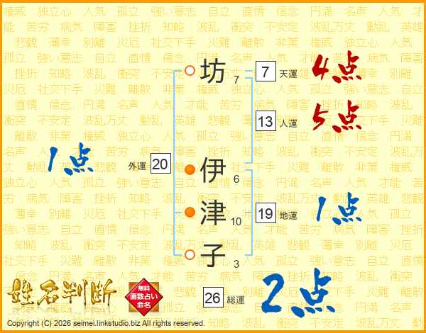 坊伊津子さんの総運は26画の2点!
