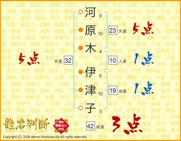 河原木伊津子さんの天運は23画の5点!