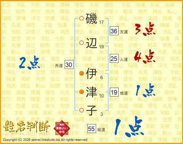 磯辺伊津子さんの天運は36画の3点!