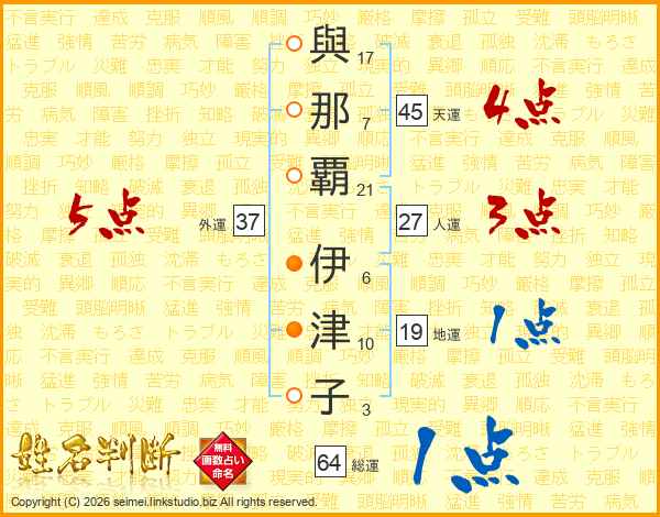 與那覇伊津子さんの天運は45画の4点!
