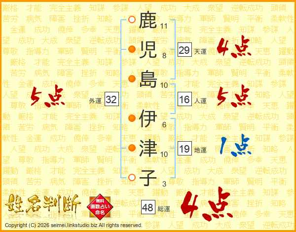 鹿児島伊津子さんの外運は32画の5点!