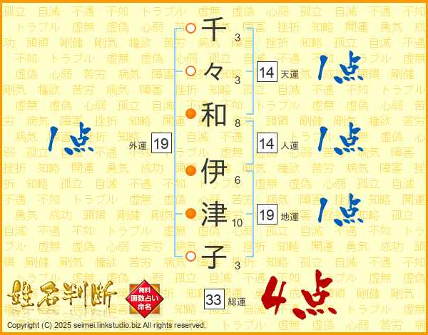 千々和伊津子さんの総運は33画の4点!