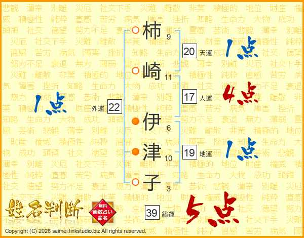 柿崎伊津子さんの総運は39画の5点!