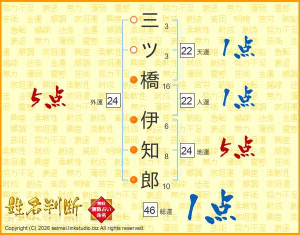 三ツ橋伊知郎さんの総運は46画の1点!