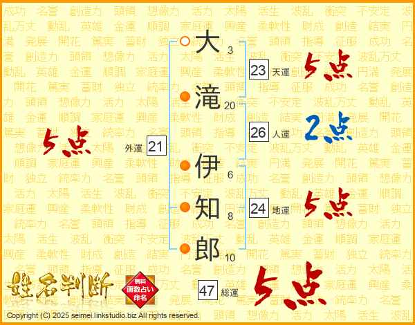 大滝伊知郎さんの総運は47画の5点!