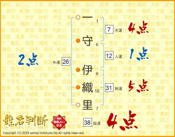 一守伊織里さんの総運は38画の4点!