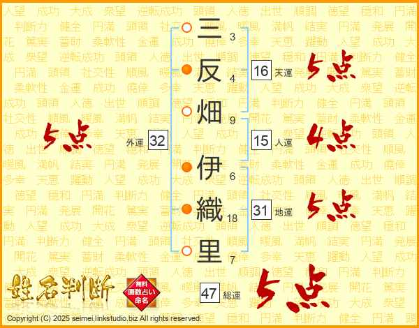 三反畑伊織里さんの総運は47画の5点!