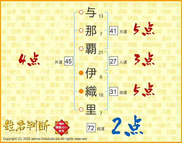 与那覇伊織里さんの総運は72画の2点!
