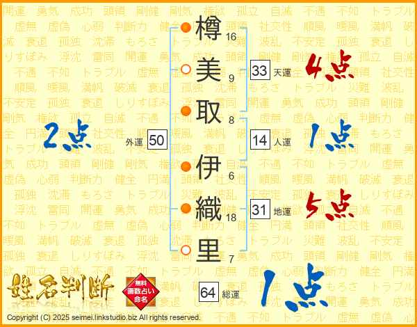 樽美取伊織里さんの天運は33画の4点!