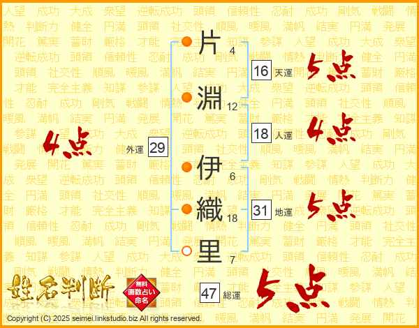 片淵伊織里さんの総運は47画の5点!