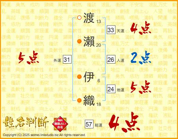 渡瀨伊織さんの総運は57画の4点!