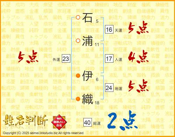 石浦伊織さんの外運は23画の5点!