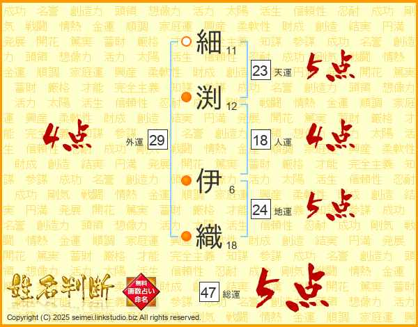 細渕伊織さんの総運は47画の5点!