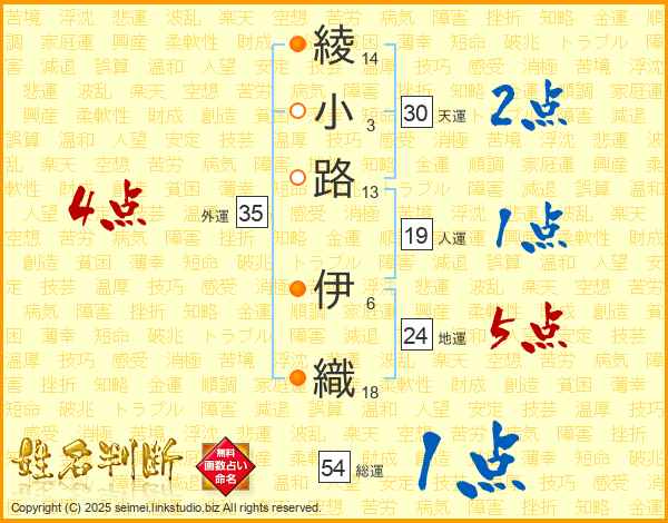 綾小路伊織さんの総運は54画の1点!