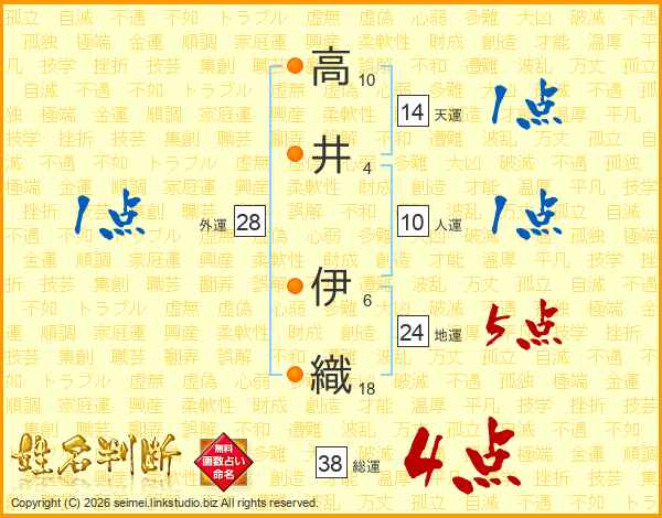 高井伊織さんの総運は38画の4点!