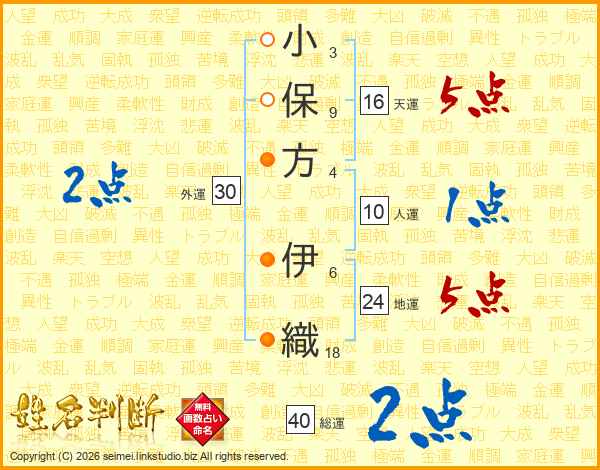 小保方伊織さんの総運は40画の2点!