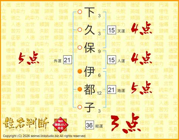 下久保伊都子さんの外運は21画の5点!