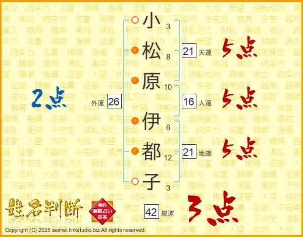 小松原伊都子さんの天運は21画の5点!