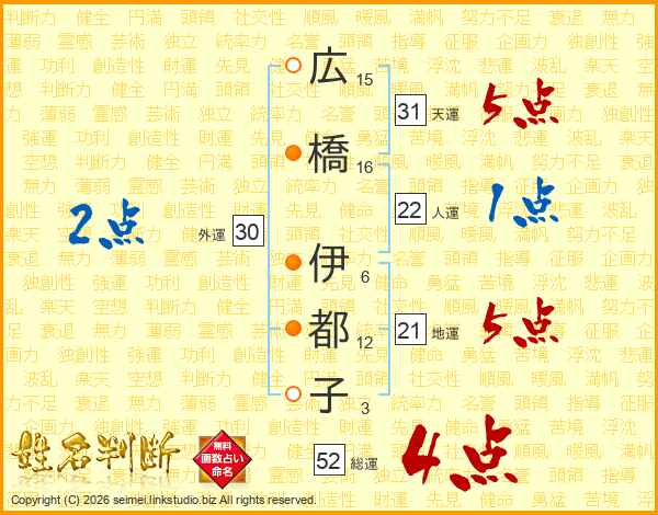 広橋伊都子さんの総運は52画の4点!