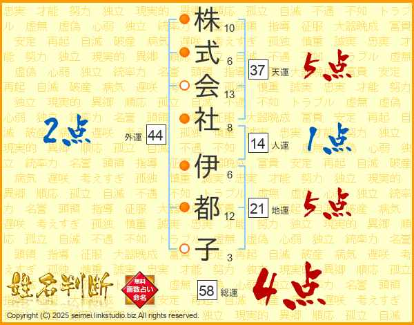 株式会社伊都子さんの総運は58画の4点!