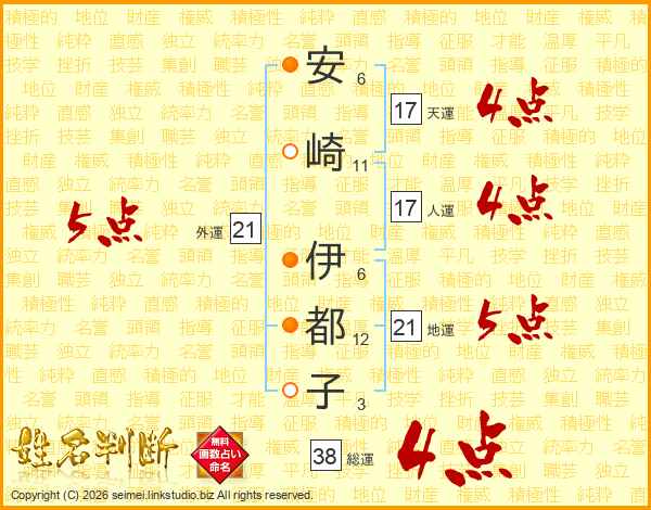 安崎伊都子さんの総運は38画の4点!