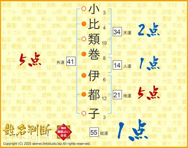 小(3画)比(4画)類(19画)巻(8画) 伊(6画)都(12画)子(3画)