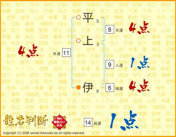 平上伊さんの総運は14画の1点!