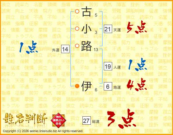 古小路伊さんの総運は27画の3点!
